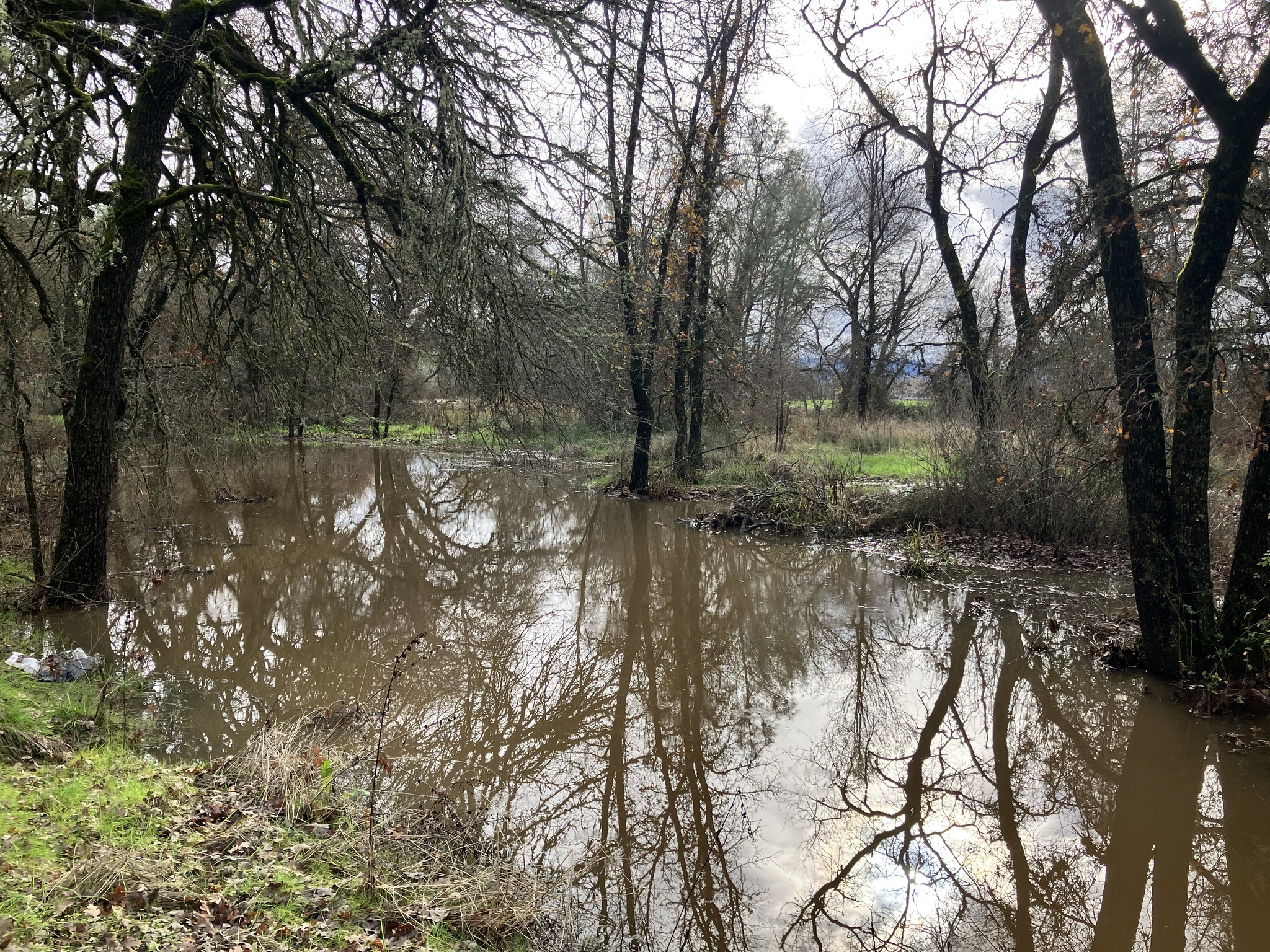 Inundated field caused by lack of flow in Cole Creek after first rainstorm of the season (December 2025)
